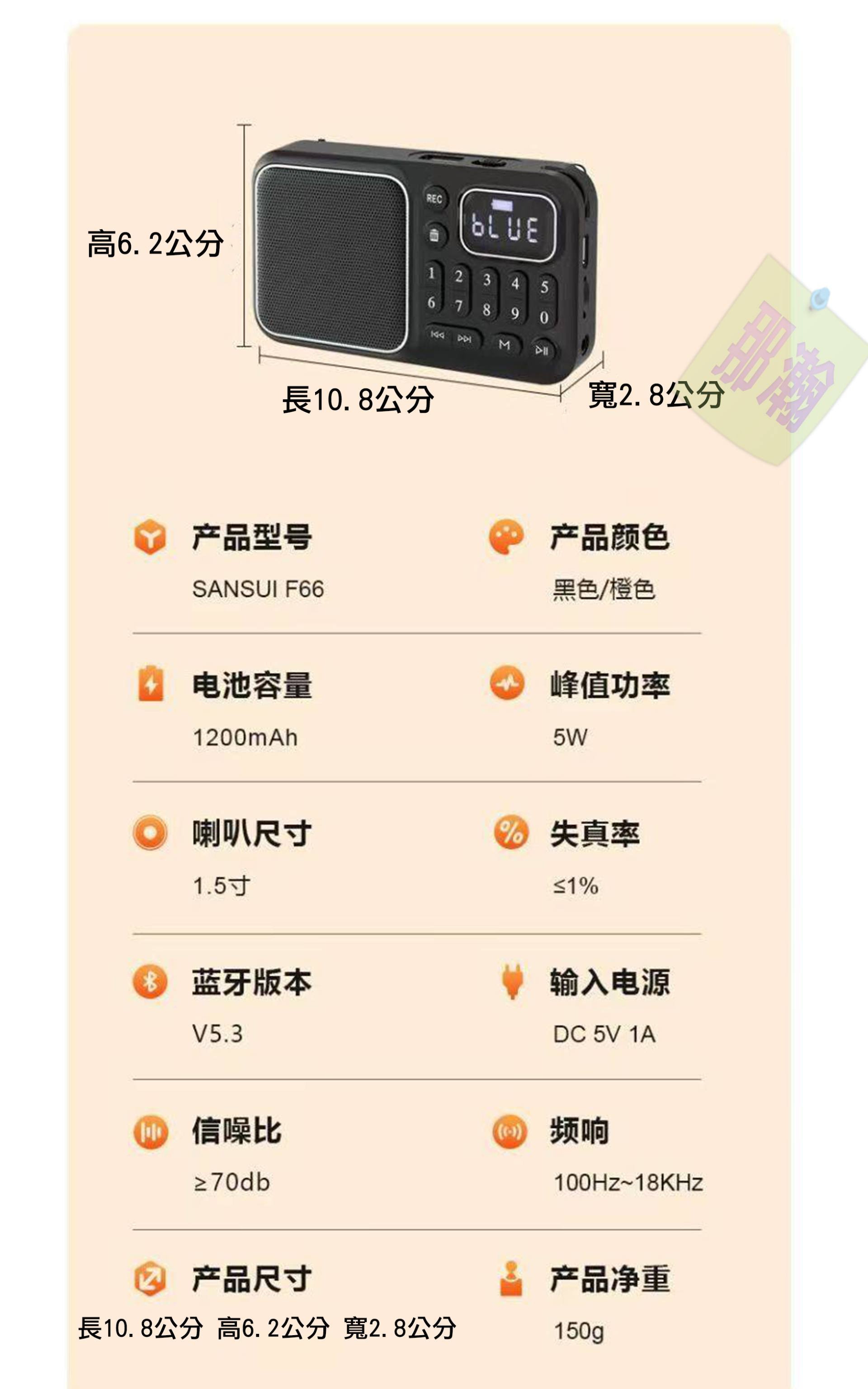 ◇ 功能模式:藍牙 / MP3 / 廣播電台