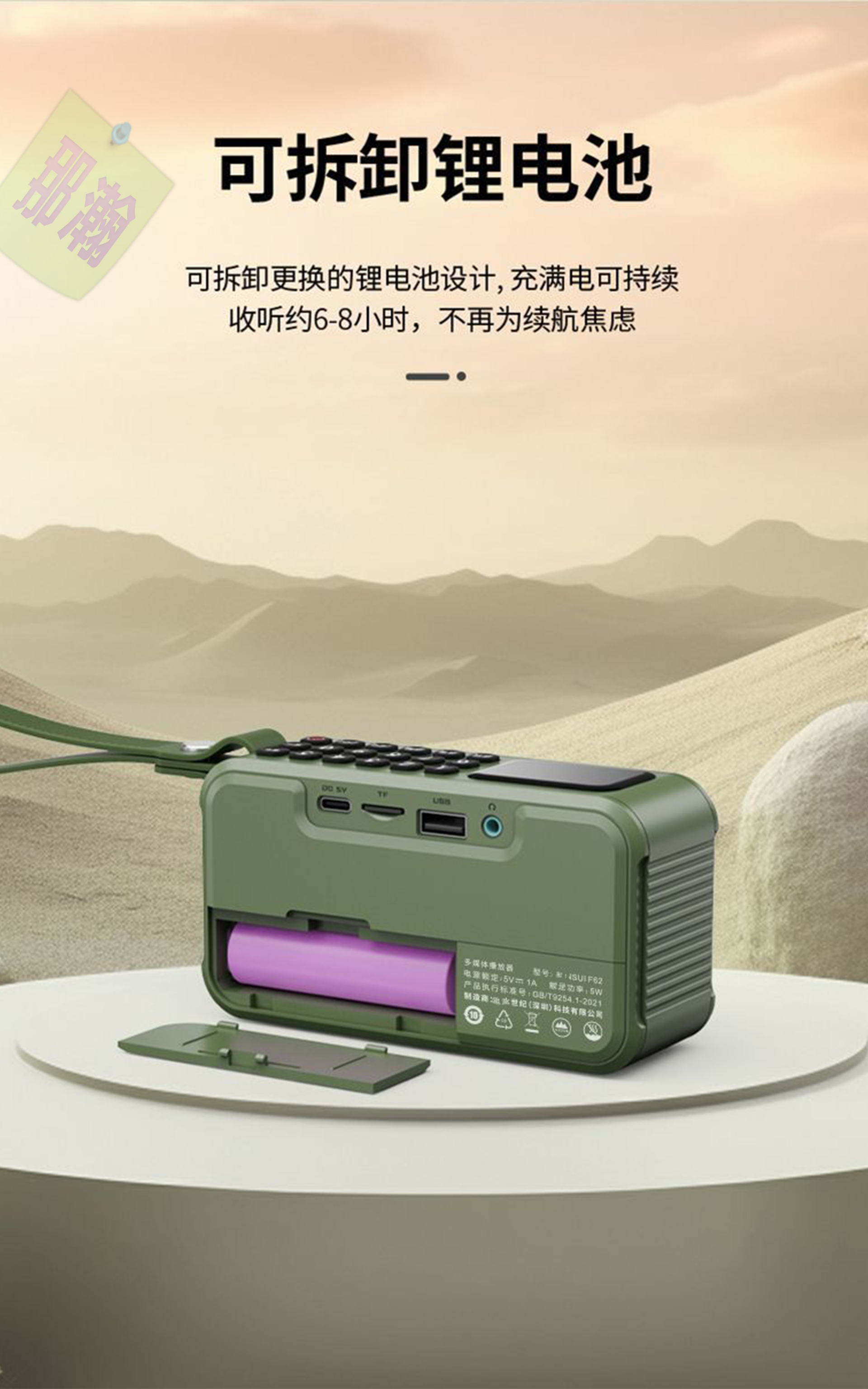 ◇ 充電方式:USB豆腐頭5v 3A以下【充電螢幕顯示電池跳動 / 充飽電電池停止跳動】采用18650電池隨時都可以充電、無論你聽多久、隨時都可以充電、不必聽到沒電才要充電、支持邊充電邊使用。