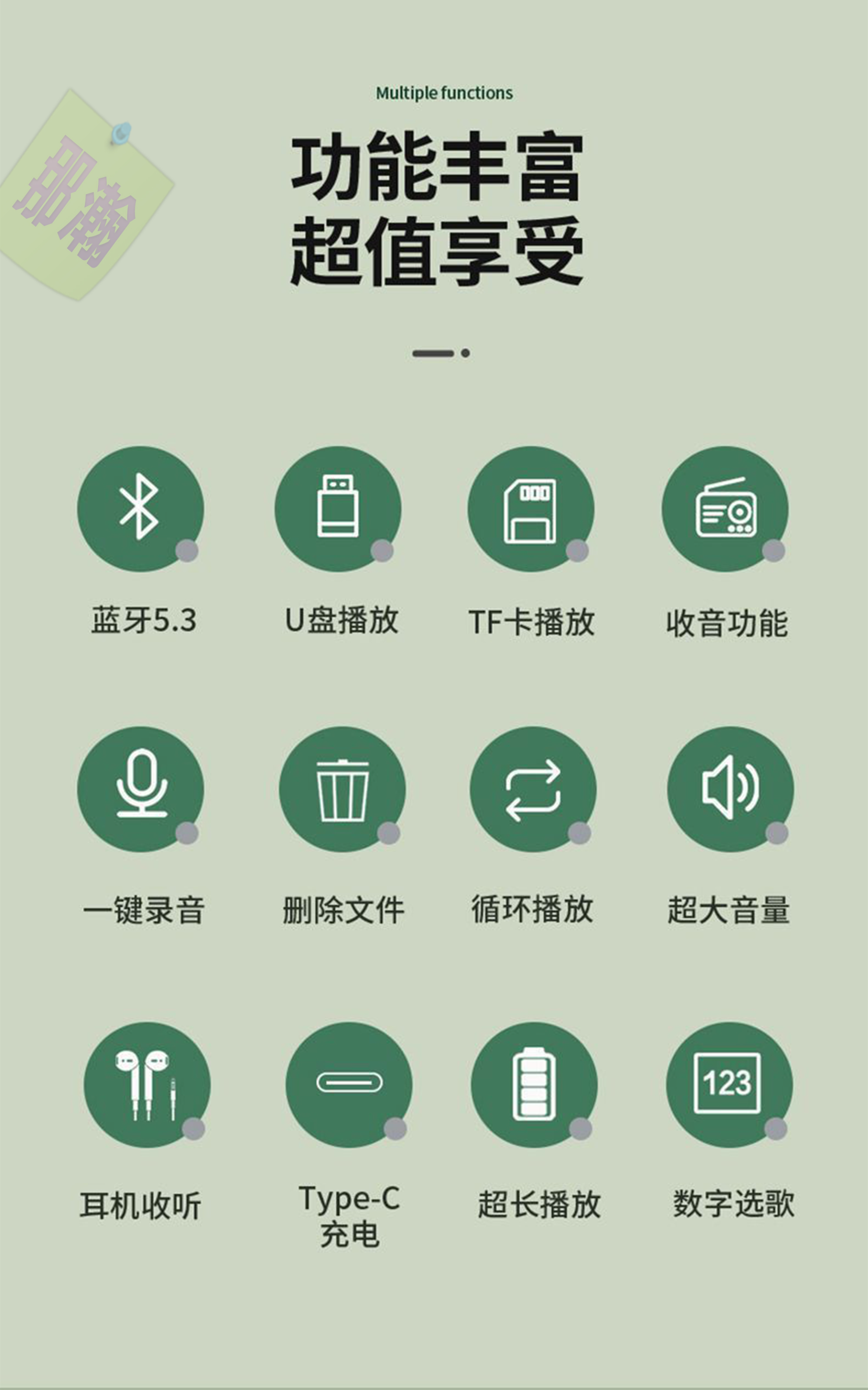 ◇ 支持:模式切換 ➭MP3功能 ➭藍牙功能 ➭電台功能。