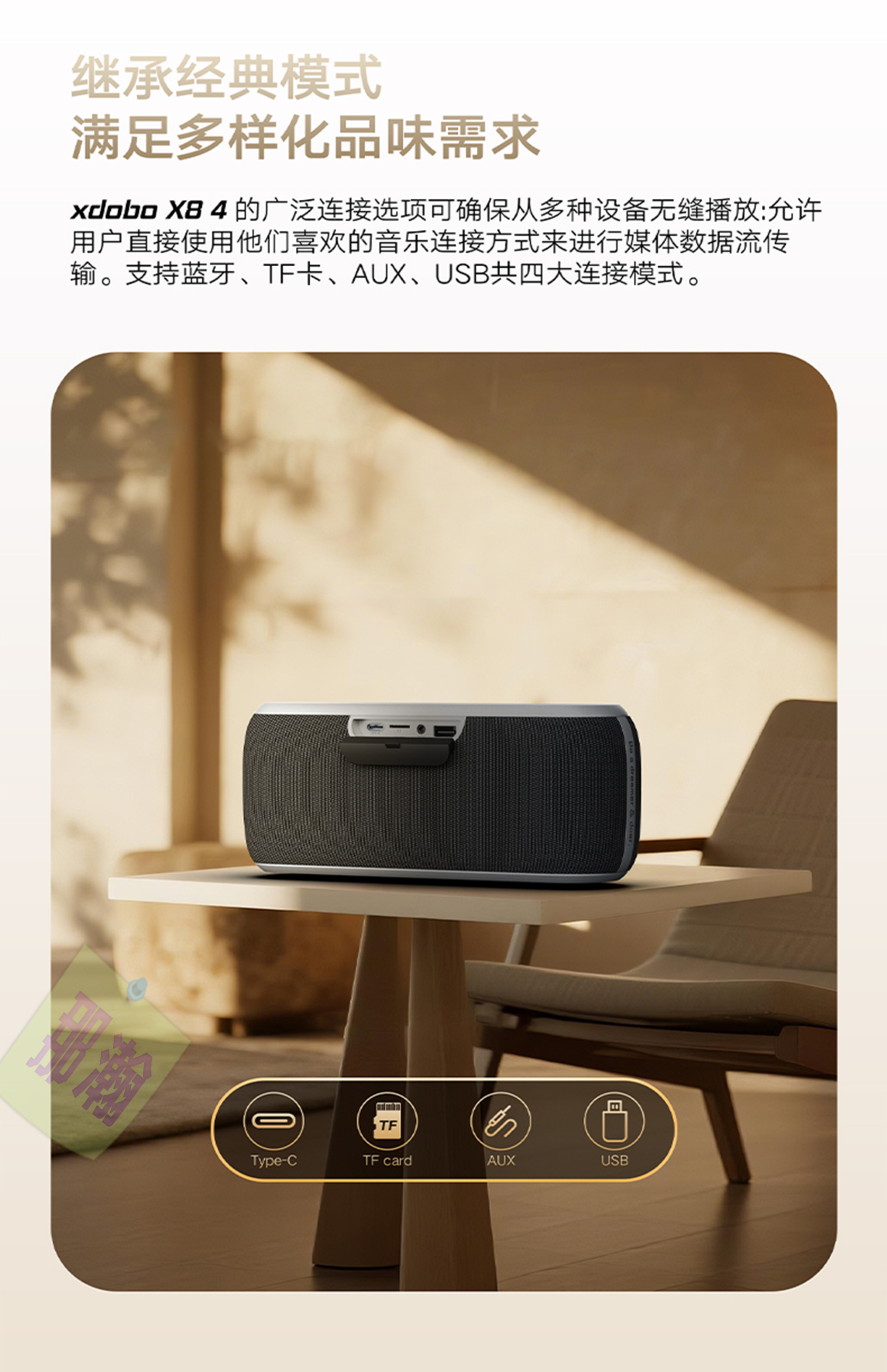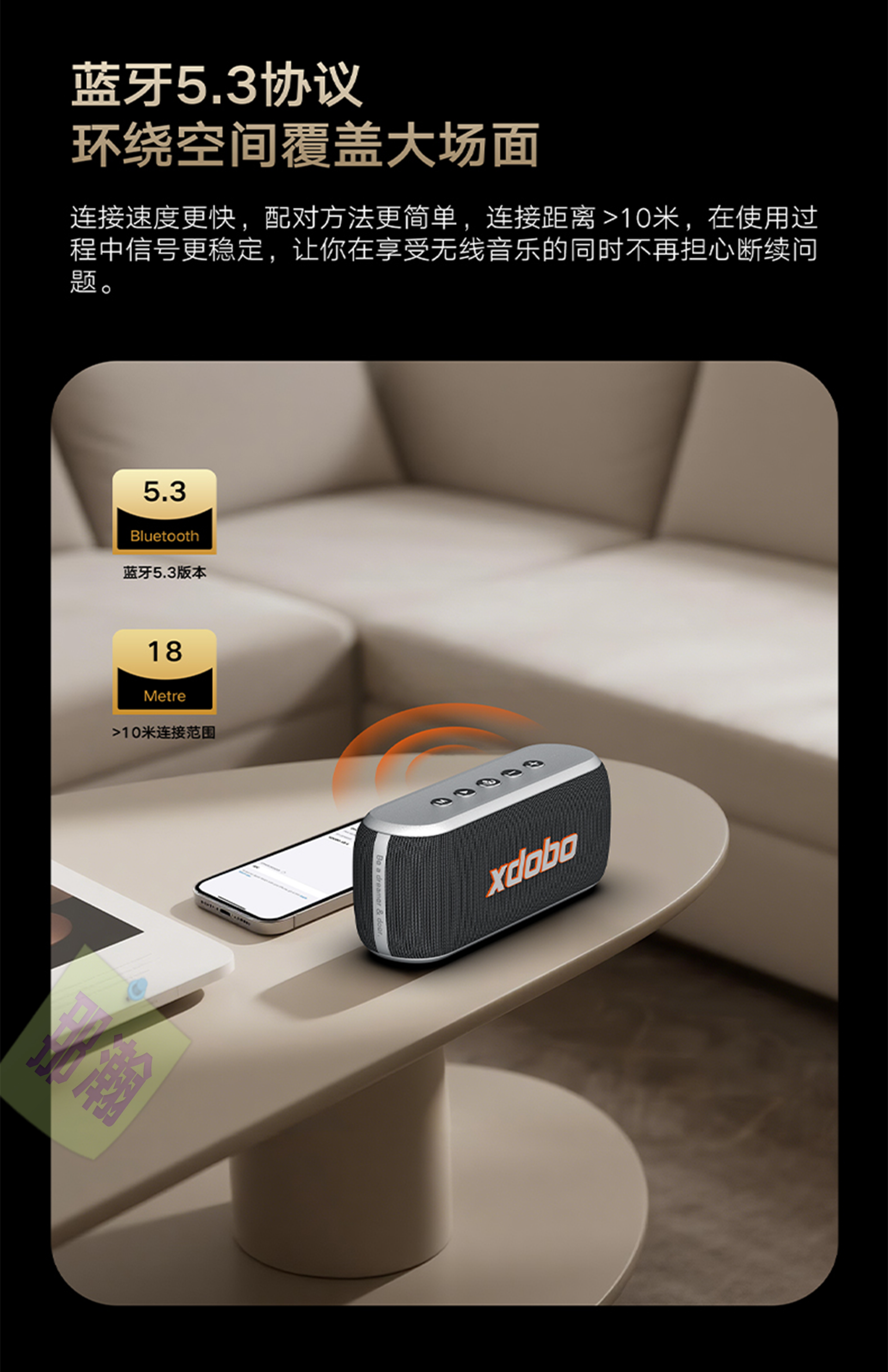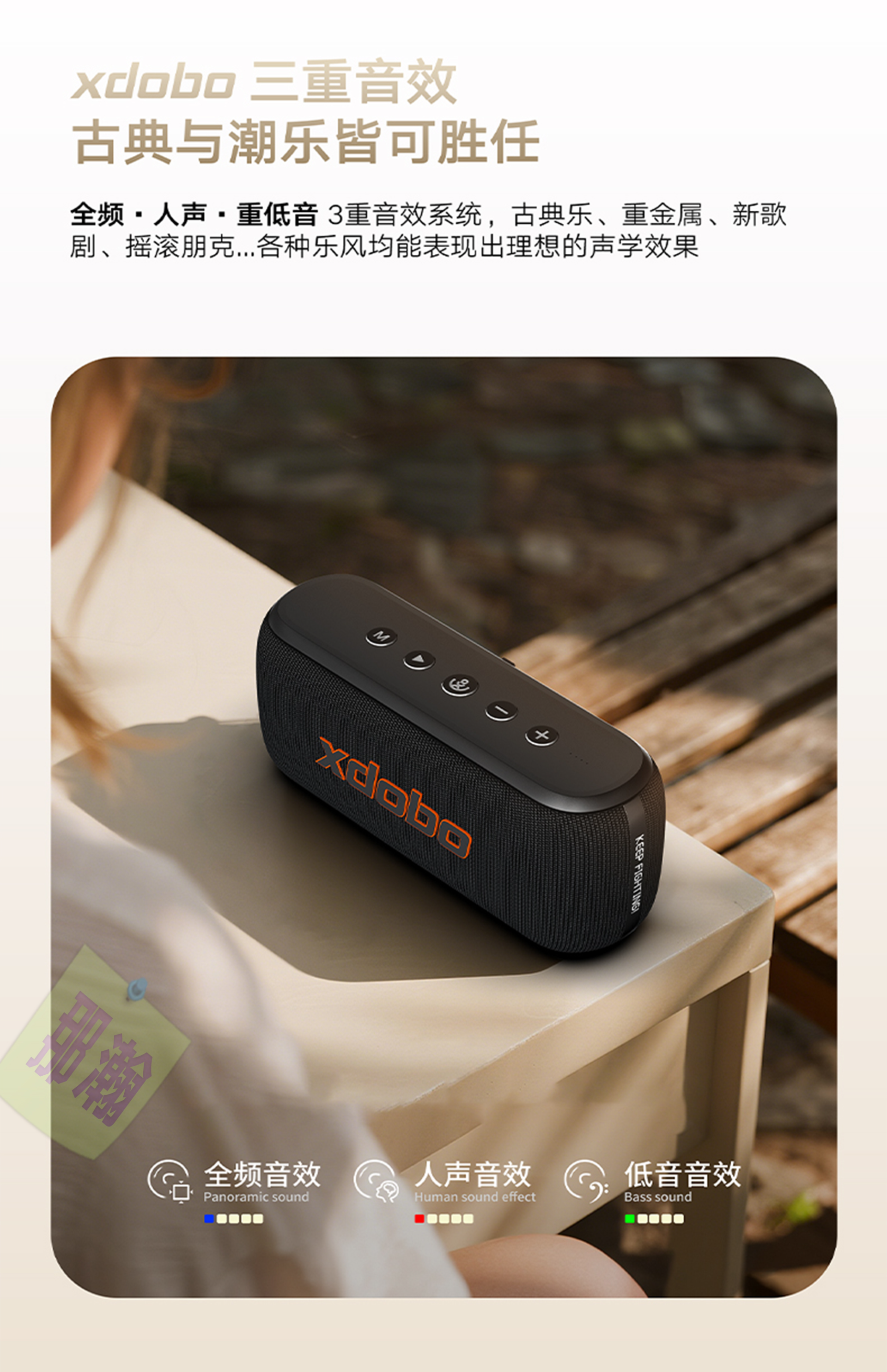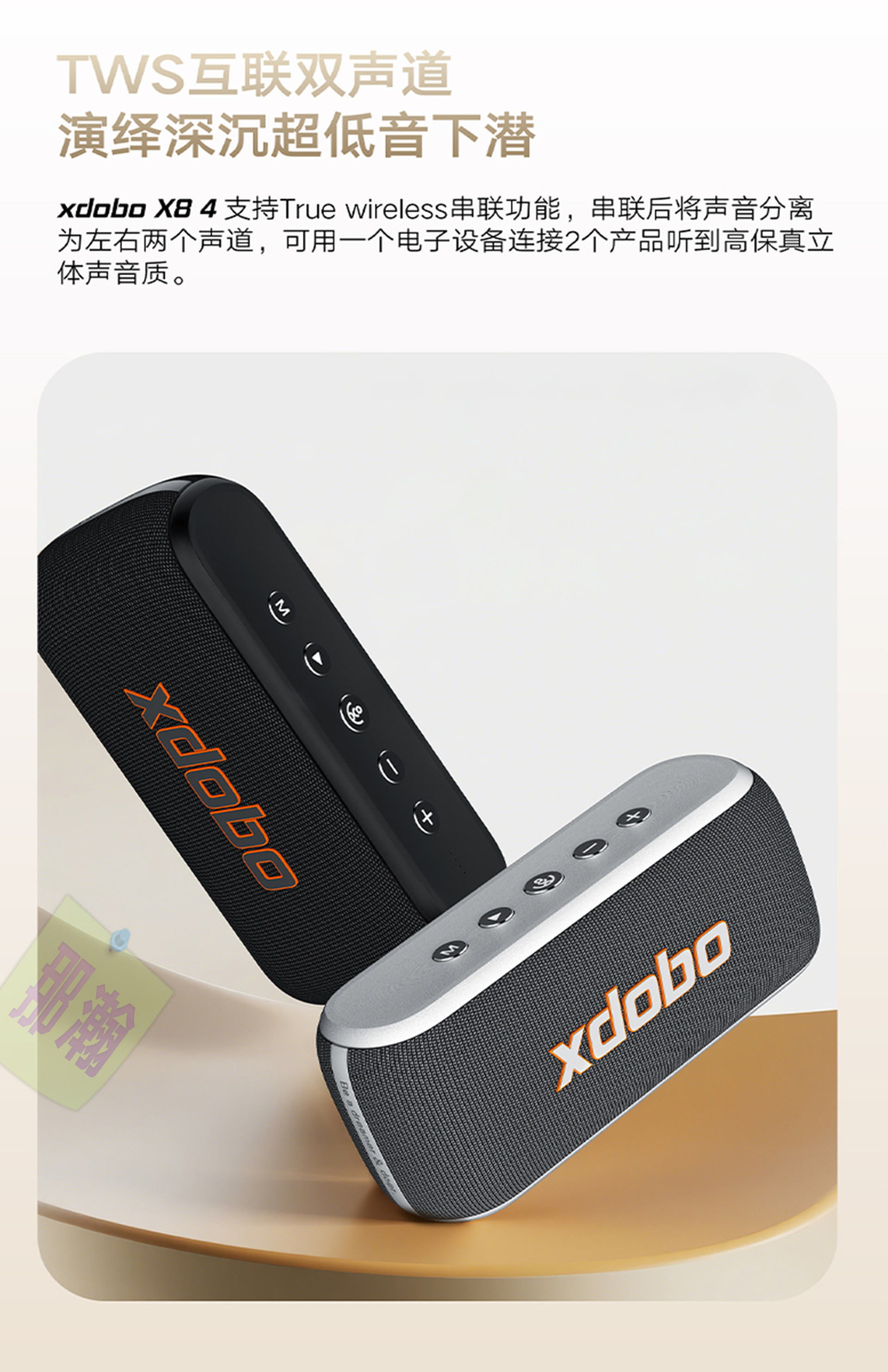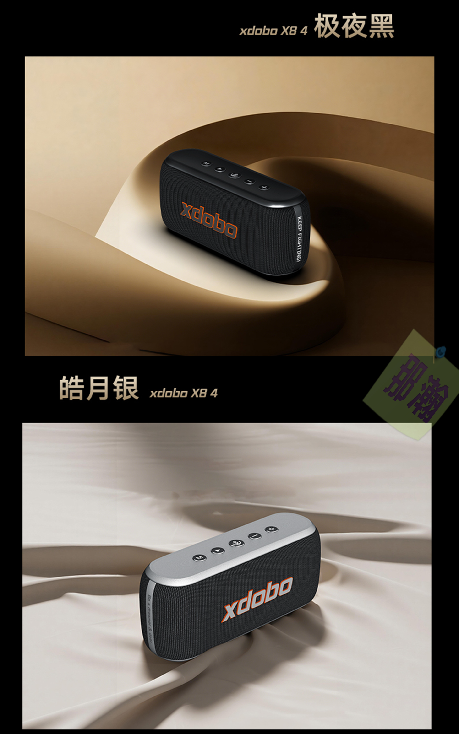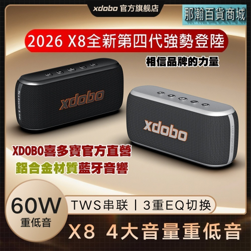 XDOBO X8 四代 60W材質是鋁合金,因其輕量、高強度、導熱性佳,使用A級18650電池, 比第三代 X8 60W的電池更好,音質方面音量音質都比第三代 X8 60W更優。