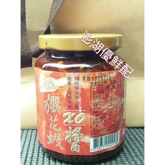 採用上等櫻花蝦搭配獨家技術及、蒜蓉、辣椒、蝦米、紅蔥頭、二砂糖調製而成