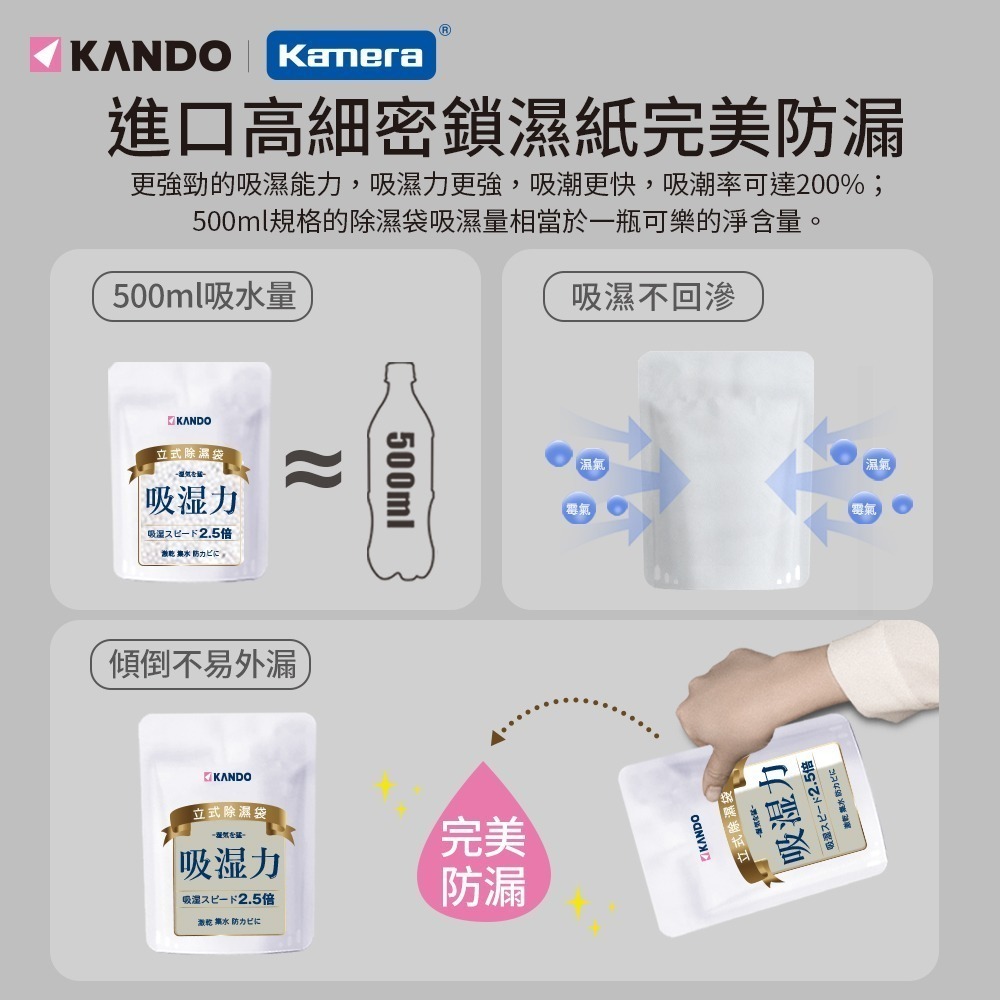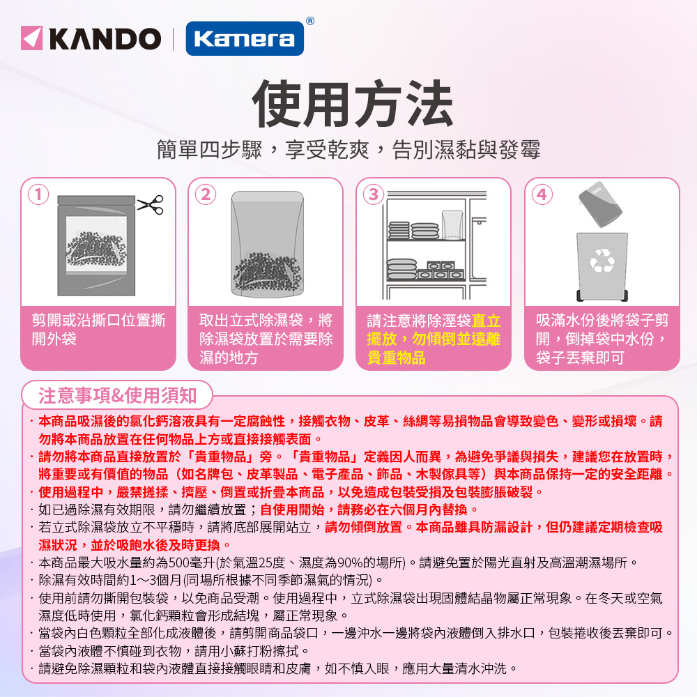 l 高效氯化鈣顆粒,透過鎖濕紙大量吸收空氣中的水分、濕氣;融化成水,鎖在立袋內。