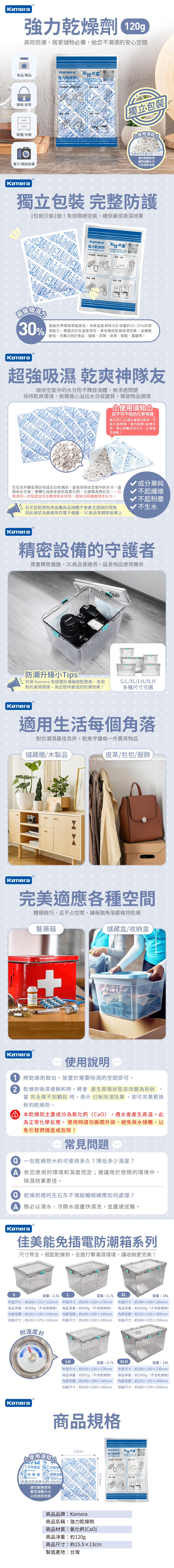 ● 建議用於密閉的環境中,搭配Kamera免插電防潮箱一起使用,除溼效果更佳。
