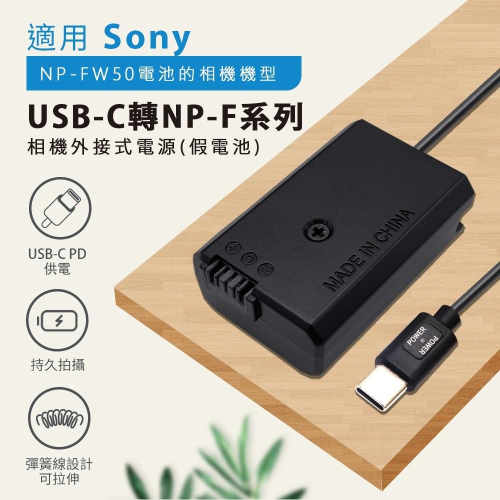 產品特點  USB-C PD供電,電源指示燈設計,通電:綠色,不通電:不亮。  假電池與原廠電池尺寸1:1,貼合相機不卡機。  使用充電器供電,亦可使用行動電源供電。  利用充電器在插座上供電,無需頻繁更換電池。  彈簧線設計:可拉伸,拉伸範圍:35-100cm。 使用說明: 只能使用帶有PD協議,而且有9V或12V工作電壓輸出的USB-C行動電源或充電器。 不能使用任何轉接頭轉出的USB-C孔,用其為假電池進行供電,因為PD協議無法啟動,造成工作電壓不正確,而無法使用。 使用時請按照以下順序安裝: 01. 首先要把假電池一端的Type-C供電線插到USB-C行動電源或充電器上,觸發PD協議,輸出足夠的9V或12V電壓,才能為相機提供電力。 02. 此時再把假電池安裝到相機的電池倉裡面。(注意:這一步必須是最後,不然有的相機因為電壓不對,造成不會開機) 03. 如果安裝使用時的順序不對,導致相機無法開機時,只要把假電池從相機的電池倉裡面拿出來,再重新安裝進去,即可開機使用。 04. 帶電源指示燈,電壓正確且通電時顯示綠色,電壓不正確或不通電時,則指示燈不亮。 品名:假電池 型號:NP-FW50 顏色:黑色 輸入電壓:PD 9V/12V 輸出電壓:8.4V/2A 彈簧線長:35-100cm(可拉伸範圍) 適用電源:充電器(PD 9V/12V輸出)或行動電源 解碼方式:全解碼,相機上顯示電量 適用相機:Sony 適用型號:ZV-E10、A7、A7R、A7S、A7M、A7II、A7S2、A7M2、A7R2、A6500、A6400、A6300、A6100、A6000、A5100、A5000、A3000、NEX5、NEX7、DSC-RX10、A33、A35、A37、A55相機 產品尺寸:約39.5 X 3.1 X 1.8 cm 包裝尺寸:約11 X 15 X 1.9 cm 產品淨重:約39g 產品毛重:約42g 包裝內容:NP-FW50假電池X1 保固:180天(非人為因素)