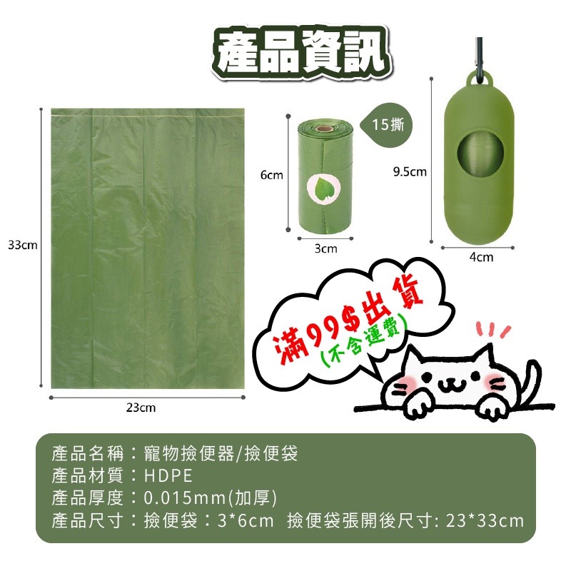 產品尺寸:撿便袋:3*6cm 撿便袋張開後尺寸: 23*33cm