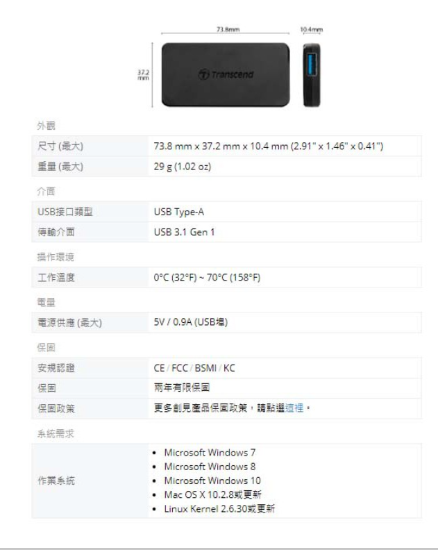 《Sunlink》Transcend 創見 USB 3.1 Gen 1 HUB2K TS-HUB2K 4埠 HUB