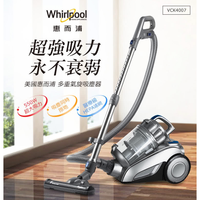 【Whirlpool惠而浦】550W多氣旋無集塵袋吸塵器 VCK4007