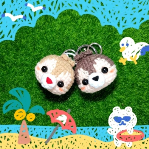 奇奇&蒂蒂鑰匙圈~鈎針。針織。毛線娃娃~🍉
