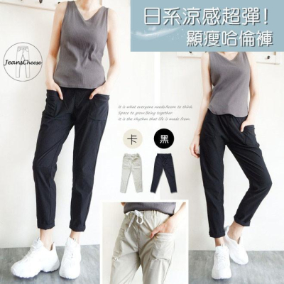 日系爆款.超彈力顯瘦涼感冰絲挺版.口袋哈倫褲.鬆緊綁帶.老爺褲.AB褲.休閒長褲.九分褲.顯瘦長褲.S9.1995