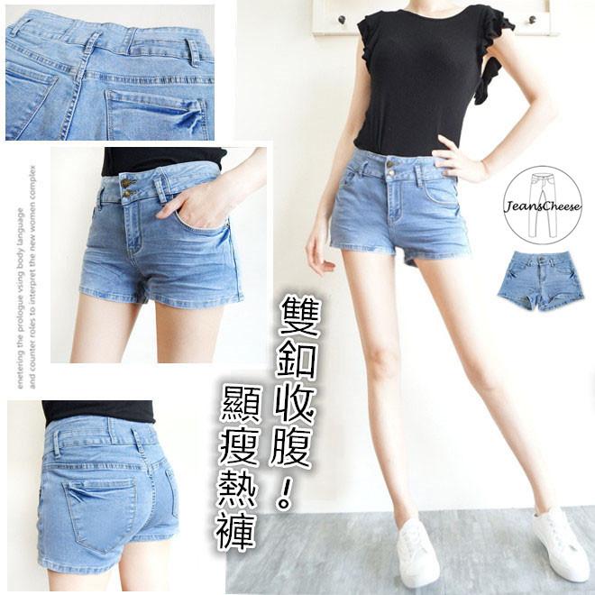 顯瘦復古挺版抓皺.中低腰雙釦收腹.超彈牛仔短褲.熱褲.收腹褲.女生短褲.辣妹必備.性感提臀.休閒短褲.#S5.0651