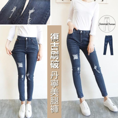 超美刷色獨家訂製💎熱銷丹寧褲刷破款 💎復古石磨感質感專櫃刷色🎉 ✨✨水洗丹寧低調深藍歐美風💎 💘質感顯瘦刷白顯腿長💘 ✔️厚度適中偏厚&挺版修身 褲長為九分小隻女也可輕鬆駕馭☝️ 彈性極優!美臀質感前後真口袋💕💕