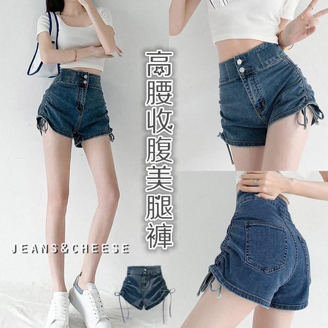 韓妞必備💖可甜可辣.雙釦高腰收腹褲.牛仔短褲.顯瘦綁帶.-5kg牛仔褲.高腰短褲.性感辣模款.真理褲.S5.3258