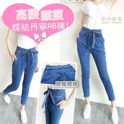 高腰氣質綁帶🎀 超彈.顯瘦抓摺.韓妞必備.AB褲.老爺褲.牛仔長褲女裝#.O3.8930