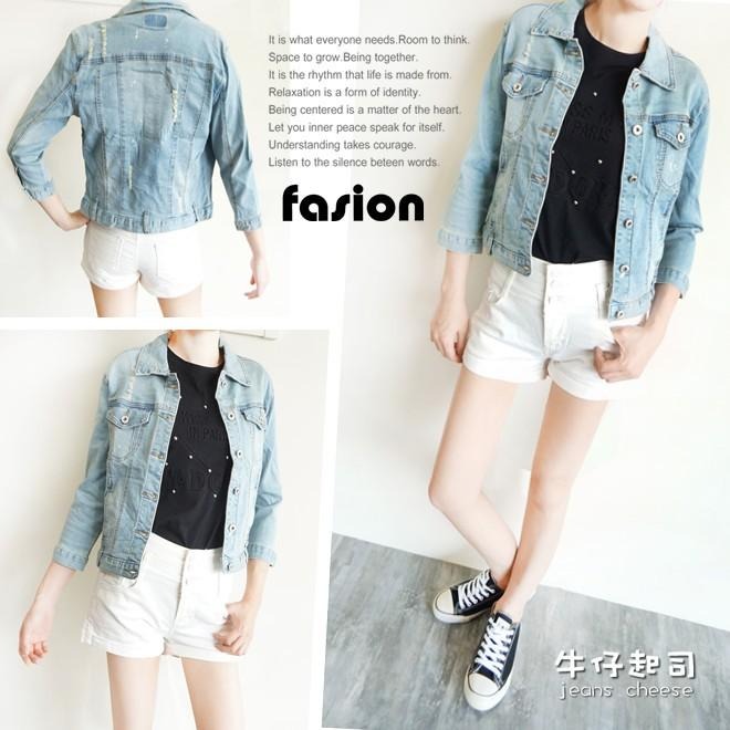 #短版外套 #牛仔外套 #現貨 #丹寧牛仔 #丹寧外套 #韓妞必備 #歐美風 #刷破牛仔外套 #外套 #七分袖 #七分外套 #防曬 #立領外套 #顯瘦 #韓系 #韓妞 #日系 #復古流行