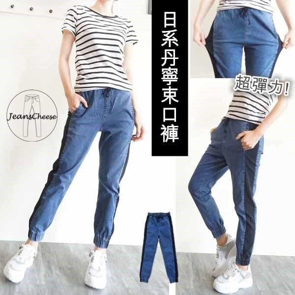 日系 顯瘦 休閒 超彈力 鬆緊帶 綁繩 束口褲 縮口褲 休閒長褲 牛仔長褲 寬鬆 長褲女 #.T3.8938