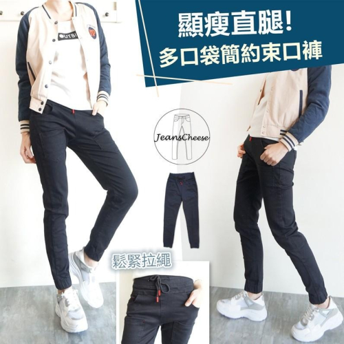 熱銷款🎉M~2L顯瘦 簡約挺版 直腿 素黑 縮口褲 束口褲 多口袋 鬆緊帶 長褲 休閒長褲 休閒褲 #.T5.7155