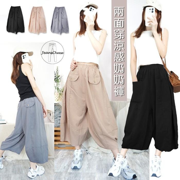 兩面穿搭超薄款 天絲棉 涼感闊腿褲寬褲 奶奶褲 哈倫褲 飛鼠褲 褲裙 功夫褲 休閒褲 大尺碼褲子.E8.0388