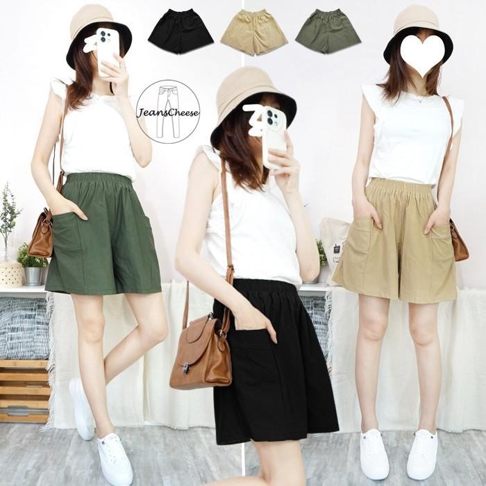 夏天日系穿搭包色款 寬鬆顯瘦A字短褲 休閒短褲 挺版彈力大口袋 高腰短褲 褲裙 闊腿褲 鬆緊短褲 短褲 休閒褲 家居褲