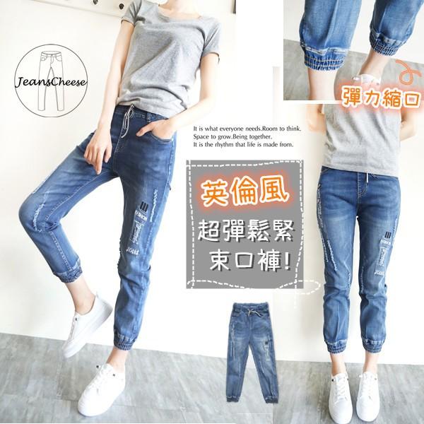 顯瘦特殊手工刷色 英字刺繡不對襯造型刷破 鬆緊超彈力束口不嘞腳 可調節鬆緊帶拉繩 全件超彈力&真口袋! 春夏秋季百搭款~