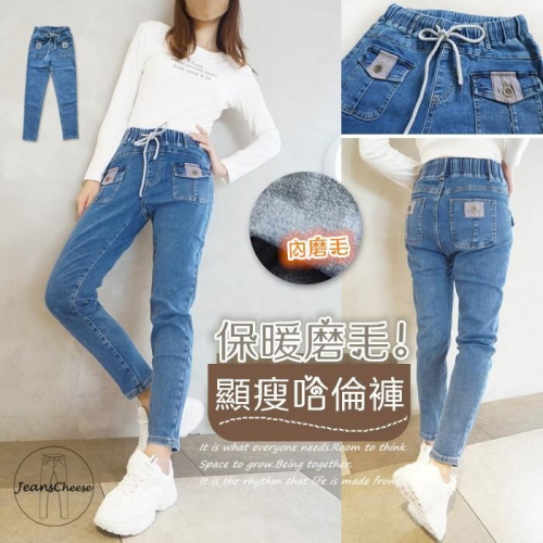 日系時尚超顯瘦高腰磨毛牛仔褲.超彈力保暖刷毛褲.拼布口袋哈倫褲.男友褲.休閒褲.保暖褲.磨毛褲.休閒長褲S5.3555
