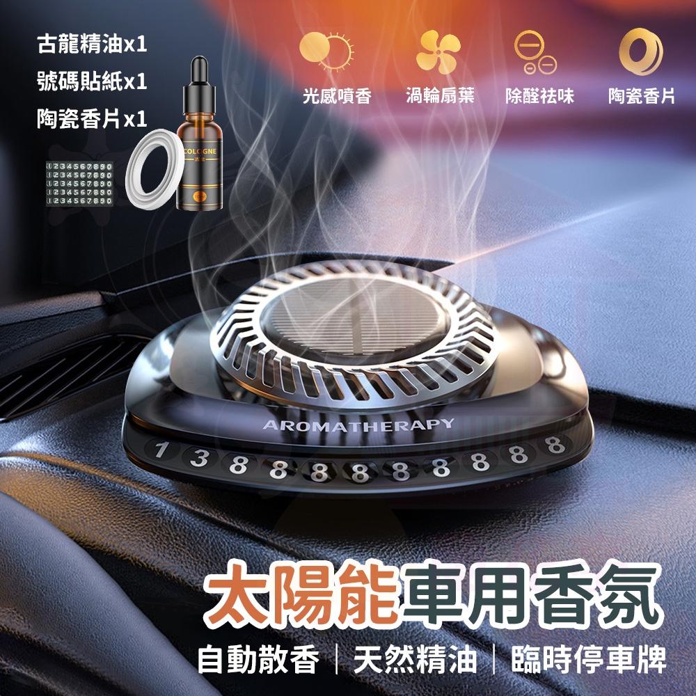 【送精油】太陽能香薰 車載香薰 汽車香氛 車用香水 車用香薰 汽車香水 車載香水 旋轉香薰 香薰芳香劑 臨停車牌