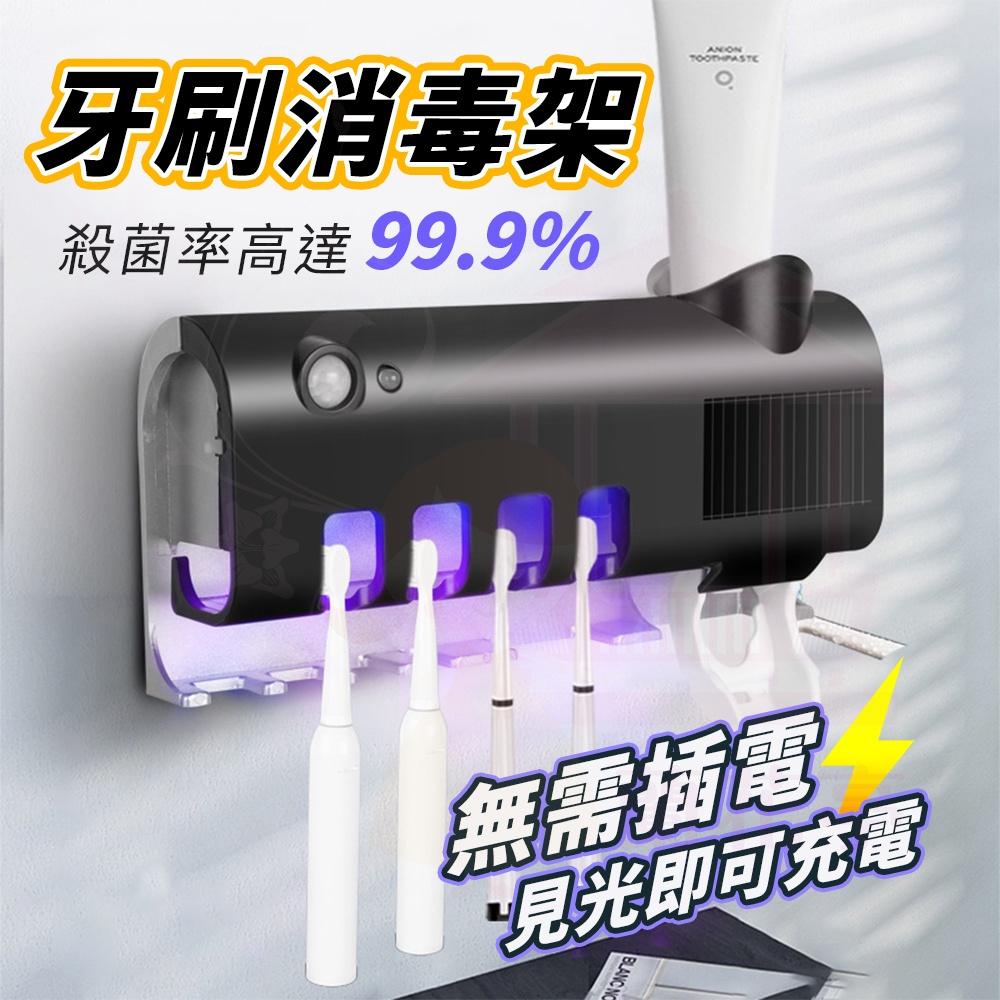 【含擠牙膏器】紫外線牙刷消毒架 牙刷架 光能充電 免插電 自動擠牙膏 牙刷架 紫外線殺菌 光觸媒 牙刷消毒器
