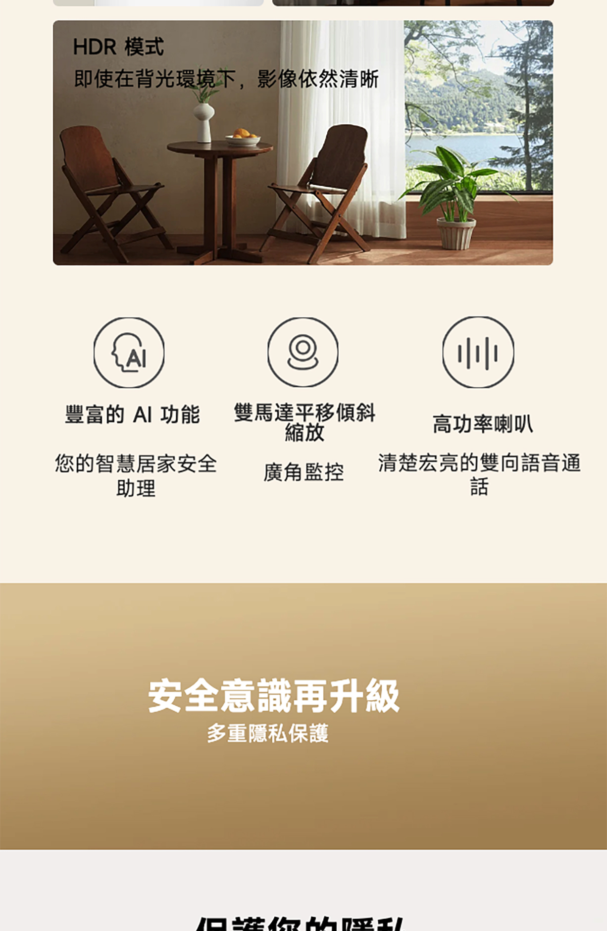 主打 AI 偵測應用,可針對寵物、強烈噪音、嬰兒哭鬧