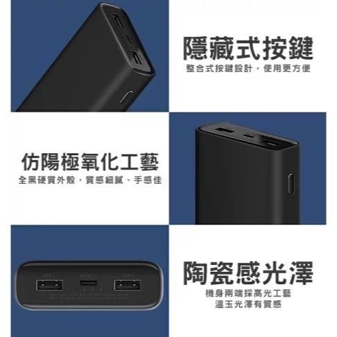 | 商品配件 | Xiaomi 行動電源 20000 50W x1 充電線 ×1 使用者手冊 ×1 |