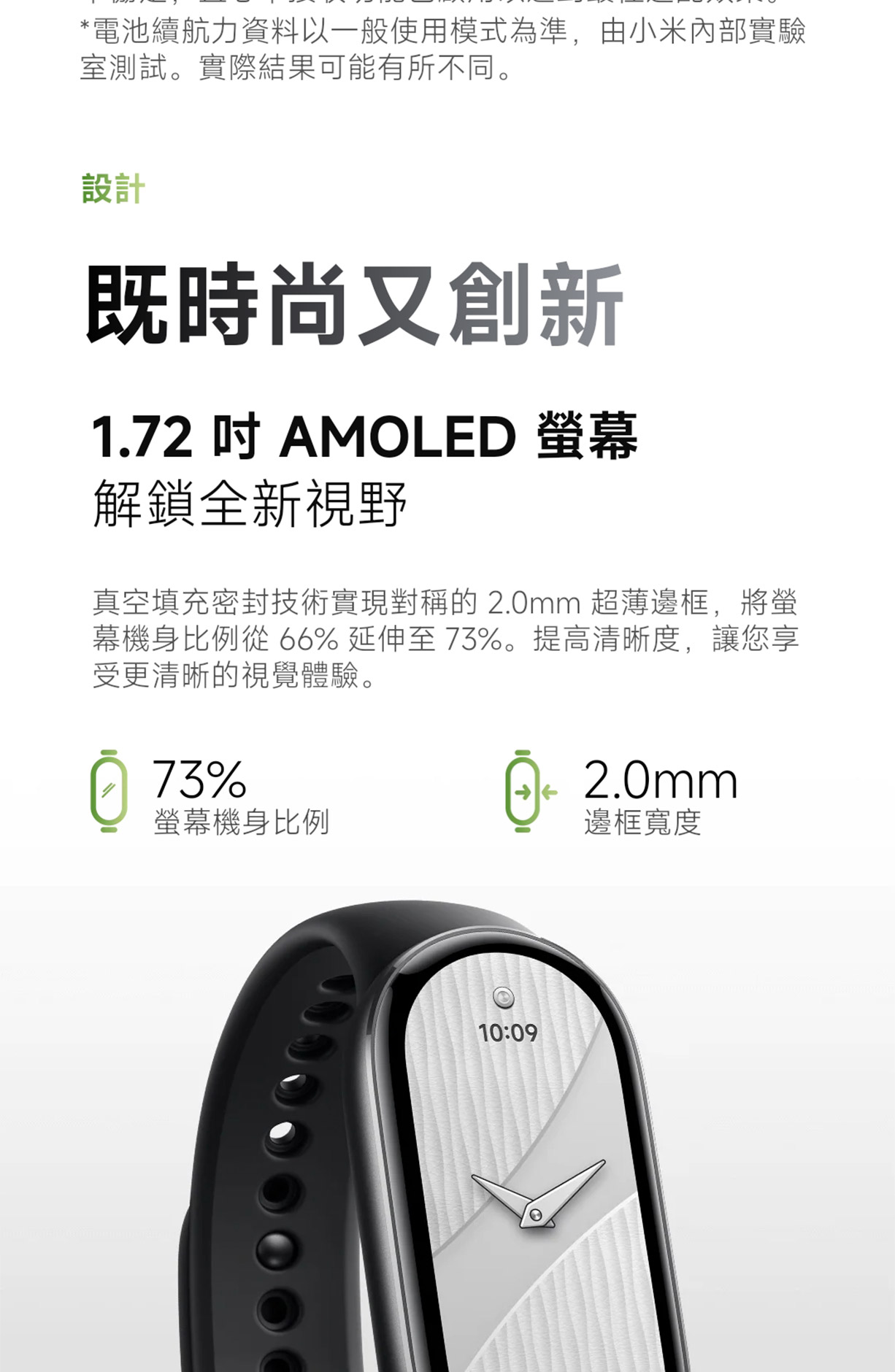 Xiaomi 手環 10 陶瓷版:47.74 × 23.94 × 10.95mm (不含心率感測器)