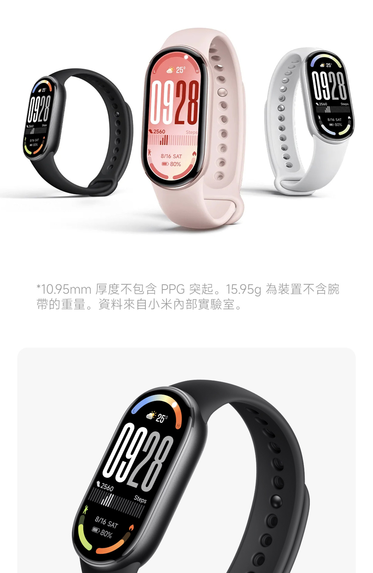 Xiaomi 手環 10:午夜黑、冰川銀、玫瑰粉