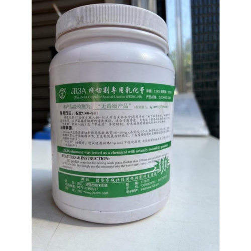 顏色分類:JR3A乳化膏 名稱:佳潤牌乳化膏  產地:諸暨  凈重:2公斤 (檢測報告:bg-07NYQT-WTO1O).  使用方法:(配比1:40-50) 將乳化膏(1公斤)投入40-50立升自來水水中(忌用井水,地下水等硬水),即可溶化使用。本產品具有極好的清洗性能,適合于高厚度,大電流(普通機床切割電流>3A,中走絲機床>5A)及中走絲多次切割,補充液體時請按比例加入膏體和水.  注意事項:  1,300MM以上高厚度切割推薦參數:脈寬:60-100,占空比:1:7-8,切割電流:2.5A左右。變頻跟蹤速度應比常規切割時慢很多)。  2,中走絲切割時,建議使用網格10以下的過濾網,連續切割100h左右,更換工作液(水箱40升)。