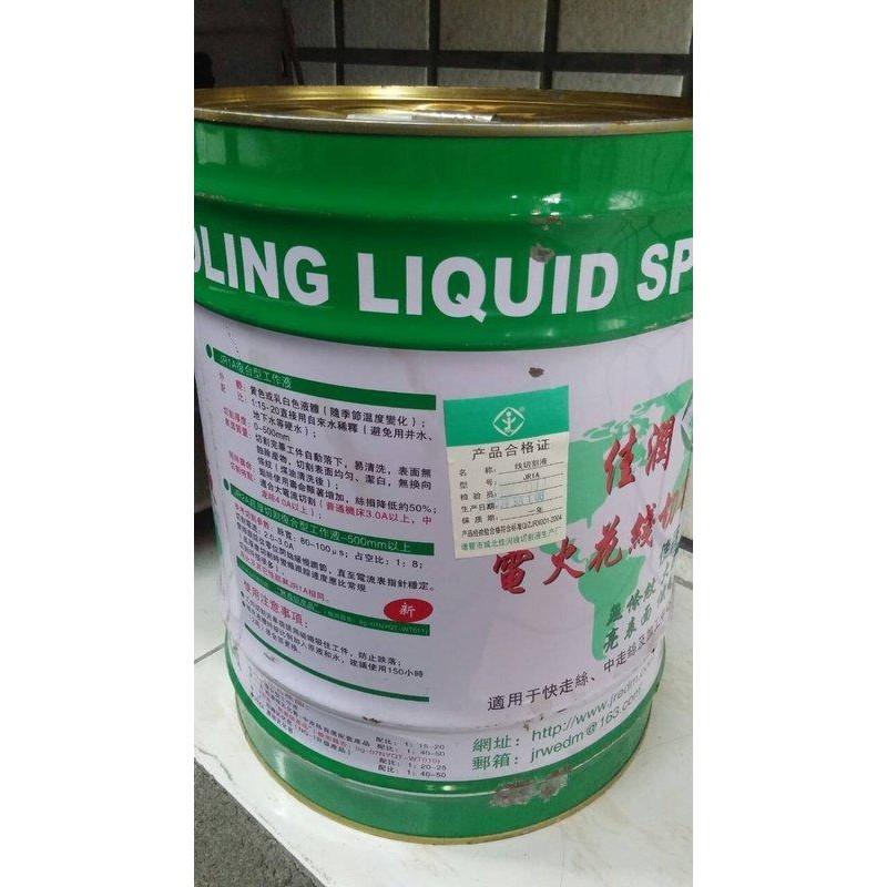 名稱:佳潤牌 線切割液 規格:18L (重18公斤左右) 中走絲線切割專用工作液使用特點: 無條紋 、 大厚度 、 高效率 長壽命 、 低絲耗 、 易清理 1)表面光潔度相對乳化油加工時提高半級 2)切割效率相對乳化油加工時提高15%左右 3)切割物分離能力強,水質透明 4)切割厚度在500mm左右較順利切割 5)鉬絲損耗減小 6)切割銅時比乳化油快30%,無銅綠。切割鋁及合金鋁時速度有提高 7)無:磺化物“無”嚴硝酸鈉對人體、對手有肌膚無影響,無毒害 8)無油霧氣,對人呼吸無影響 ------------------------------------------------------------------------------------------------------------- 佳潤水基環保線割液 複合/環保型線切割工作液【中走絲首選】 本品為黃色透明或乳白色液體(隨季節溫度變化)。 配比是以1:15~20,直接用自來水稀釋,避免用井水地下水等硬水。切割厚度0~500MM,切割完工件自動落下, 易清洗,表面無蝕除產物,切割表面均勻,無換向條紋。 鉬絲壽命顯著增加,絲損降低約50%,適合大流量切割,普通機床要在3.0A以上,中走絲在4.0A以上。 環保產品,稀釋後直接排放。 另外注意:本產品具有高效排屑能力,在切削結束前需用磁鐵吸住工件,以防自動滑落。減少不必要的損失。 補充液按比例加入原液和水建議使用150小時(2週)後全部更換。
