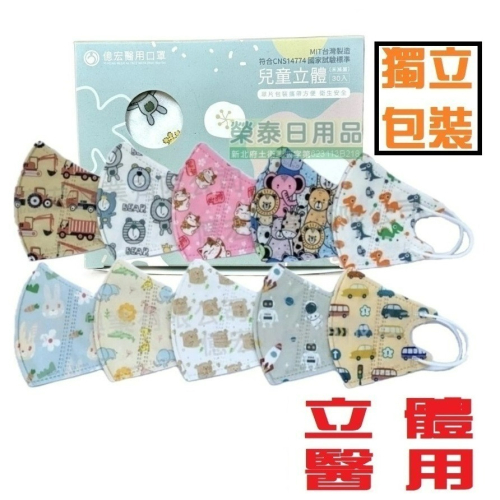 ●商品名稱:億宏兒童立體醫用口罩(單片獨立包裝) 億宏幼童立體醫用口罩 兒童3D口罩 幼童3D口罩 兒童立體 幼童立體 兒童醫療口罩