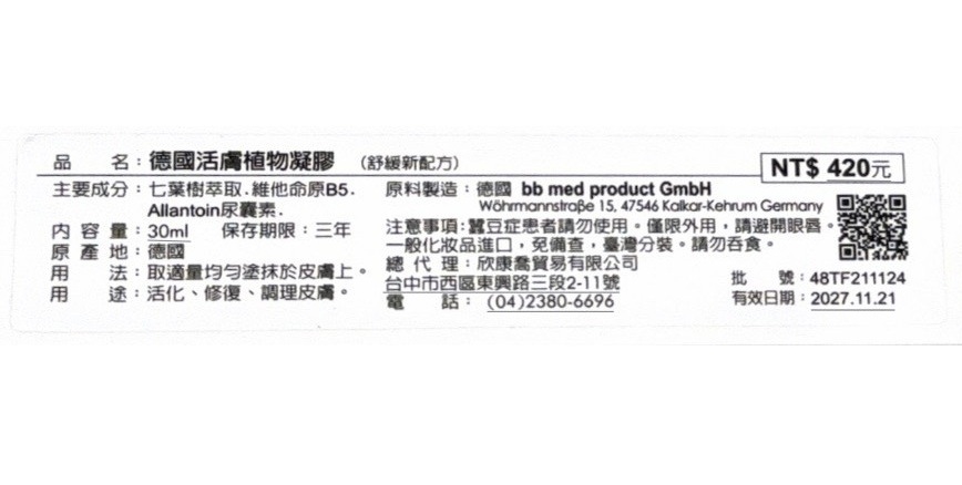 有效期限:2027/10/21 (製造日期會因庫存批次而有所不同,請詳見產品包裝標示)