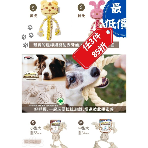 【特色/介紹】 1.100%純棉製成,溫和舒適 2.可鍛鍊牙齦的理想玩具 3.可讓愛犬舒緩壓力