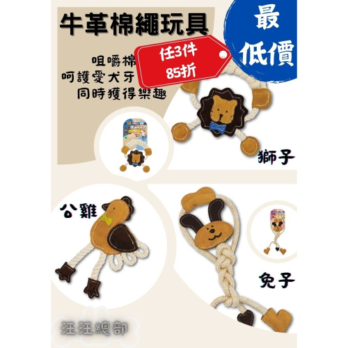【商品名稱】牛革棉繩玩具-獅子 牛革棉繩玩具-公雞 牛革棉繩玩具-免子