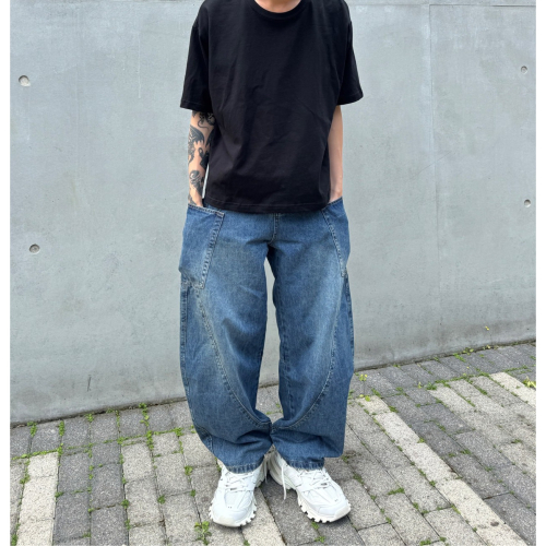• 獨特弧形剪裁,從大腿到褲管自然延伸,立體寬鬆輪廓,穿出街頭潮流感