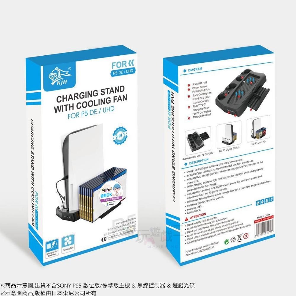 KJH PS5 散熱風扇直立架 雙手把座充+遊戲光碟架