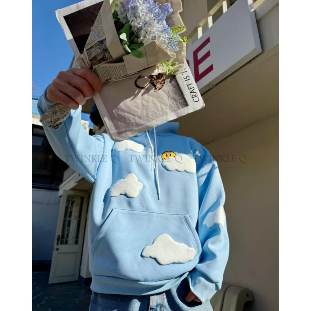 🎀TwinkleQ韓國代購-預購✈️東大門🔥南大門正韓 連帽t恤 男女中性 笑臉 雲朵 刷毛 連帽上衣 連帽衫 帽t
