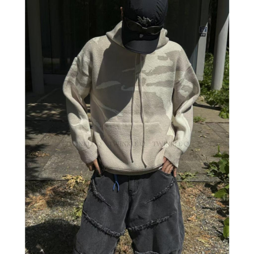 🎀Twinkle Q韓國代購-預購✈️東大門🔥南大門正韓 針織連帽上衣 迷彩風 休閒 連帽t恤 針織毛衣 毛衣