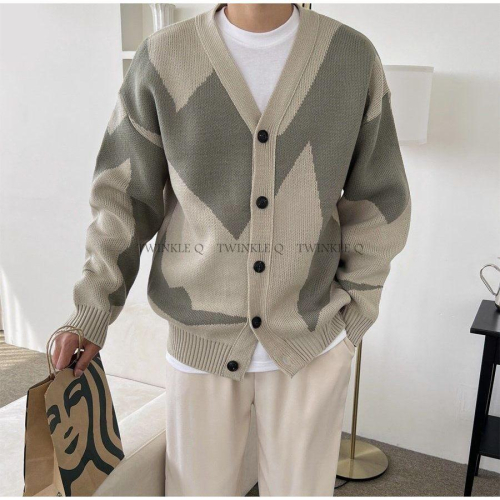 Twinkle Q韓國代購(現貨+預購)✈️東大門🔥南大門正韓 針織毛衣 不規則 撞色休閒外套 V領針織外套 男女 中性