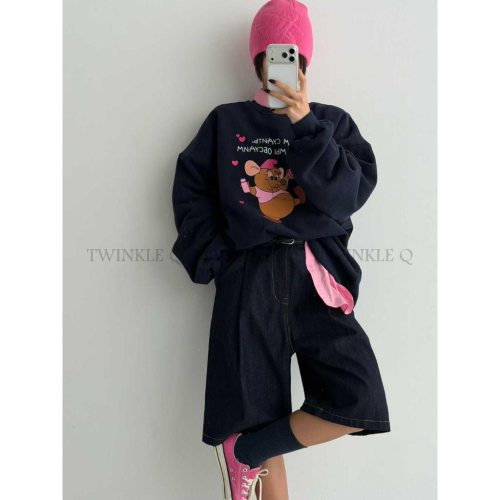 🎀TwinkleQ韓國代購-預購✈️東大門🔥南大門正韓 大學t 卡通圖案印花 刷毛 休閒上衣 寬鬆 長袖t恤 大學踢