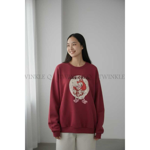🎀Twinkle Q多國代購-預購✈️東大門🔥南大門正韓 大學t 卡通圖案印花 中性 寬鬆上衣 刷毛 長袖上衣 大學踢
