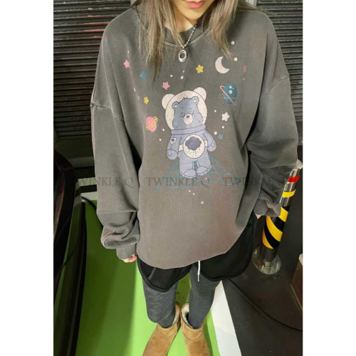 🎀TwinkleQ韓國代購-預購✈️東大門🔥南大門正韓 大學t 太空彩虹熊 圖案印花 水洗t 寬鬆 休閒 長t 大學踢