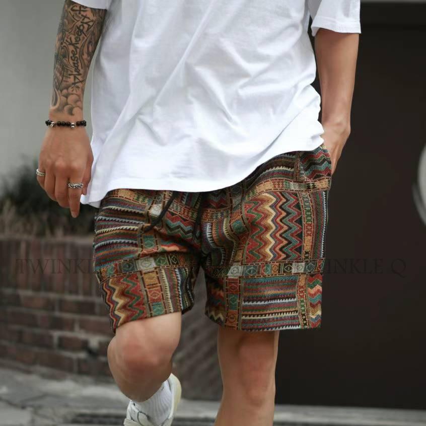 🎀Twinkle Q韓國代購(現貨+預購)✈️東大門🔥南大門正韓 短褲 民俗風 線條 圖案 百搭 休閒短褲 男女 中性