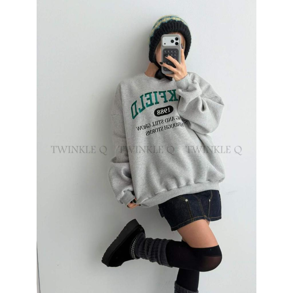 🎀TwinkleQ韓國代購BUY好物-預購✈️正韓🇰🇷 大學t 字母 刺繡 刷毛 長袖上衣 長t 寬鬆t恤 大學踢