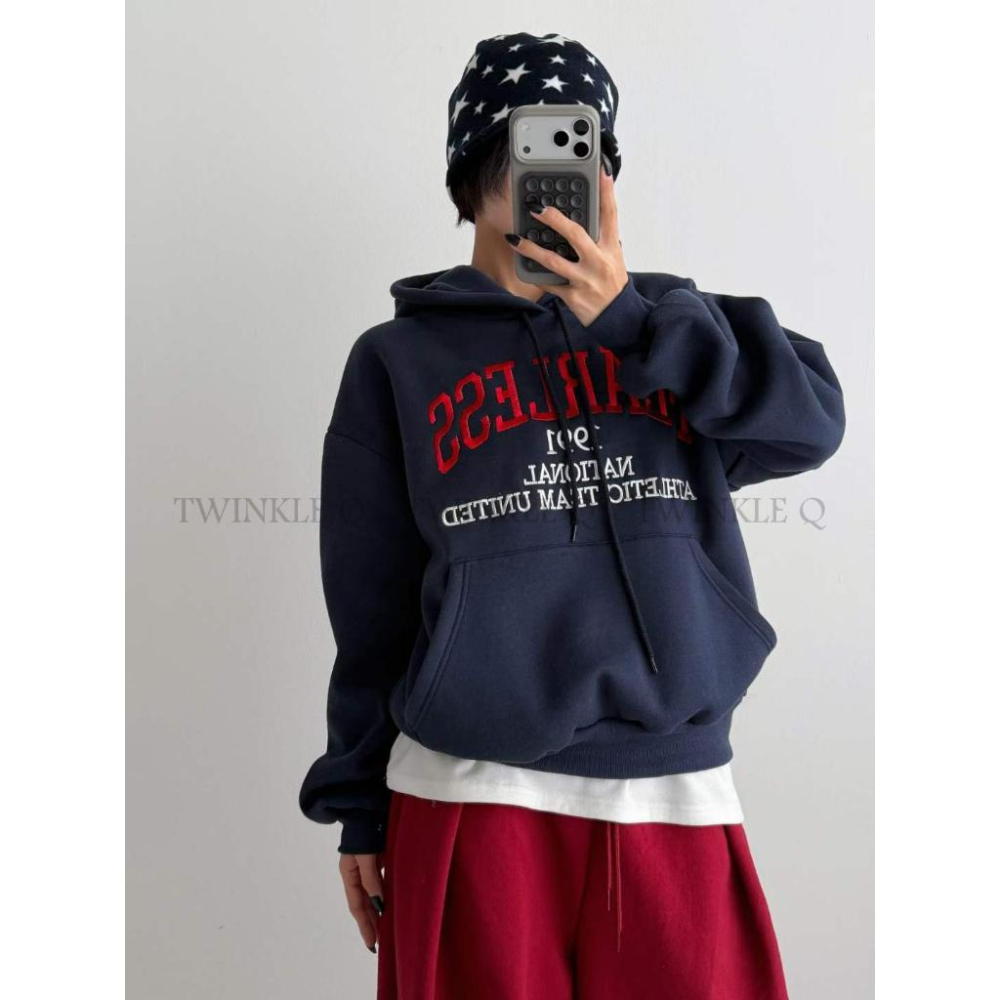🎀TwinkleQ韓國代購BUY好物-預購✈️正韓🇰🇷連帽t恤 字母 刺繡 刷毛 連帽上衣 休閒 寬鬆 連帽衫 帽t