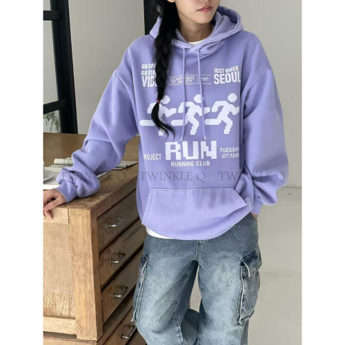 🎀TwinkleQ韓國代購BUY好物-預購✈️正韓🇰🇷 連帽t恤 字母 圖案印花 刷毛 寬鬆上衣 連帽上衣 帽t 中性