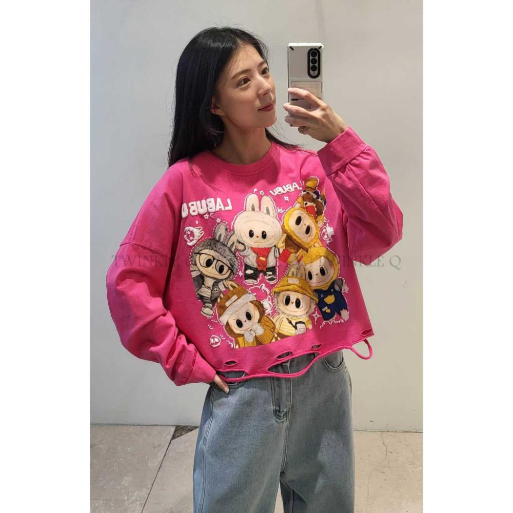 🎀TwinkleQ韓國代購BUY好物-預購✈️正韓🇰🇷 長袖上衣 拉布布 圖案 字母印花 割破 寬鬆 長袖t恤 長t