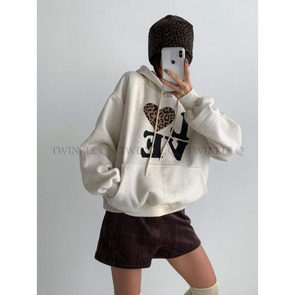 🎀TwinkleQ韓國代購BUY好物-預購✈️正韓🇰🇷 連帽t恤 愛心 豹紋 寬鬆 連帽上衣 長袖t恤 連帽衫 帽t